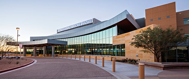 Proton therapy facilities Print Arizona The proton beam facility in Arizona is located in the Mayo Clinic Comprehensive Cancer Center. Arizona Southwest art brightens proton beam facility waiting areas. Arizona Families and visitors can relax in the large, open waiting area. Arizona Wide, well-lit hallways make Mayo's proton beam facility safe and accessible for people with limited mobility. Arizona The proton beam waiting area includes areas suited to the needs of young visitors. Arizona Light, open treatment rooms provide a comfortable environment for proton beam treatment. Minnesota The main lobby for the Proton Beam Therapy Program provides space for patients to socialize and have private conversations. Minnesota The Mayo Clinic Proton Beam Therapy Program — Minnesota campus is in the Richard O. Jacobson Building. Minnesota The 210,000-square-foot proton beam therapy facility has a separate waiting area for families with children — both those being treated and siblings — complete with video games, toys and books. Minnesota The Mayo Clinic Proton Beam Therapy Program — Minnesota campus. Minnesota Colorful artwork in a bright setting lends a pleasant, relaxing atmosphere. Minnesota Special areas for pediatric patients and their families provide places to play, relax and wait for appointments. The proton beam facilities at Mayo Clinic in Rochester, Minnesota, and Phoenix/Scottsdale, Arizona, each house their own particle accelerator that drives protons to nearly the speed of light before delivering therapeutic radiation to your tumor. Four treatment rooms at each facilityEach facility has four proton beam treatment rooms equipped with pencil beam scanning that operate up to 16 hours a day. That means you receive treatment as quickly and as efficiently as possible. Proton Beam Therapy Program — Mayo Clinic's campus in ArizonaThe proton beam therapy facility is located east of the Mayo Clinic Specialty Building on the Phoenix campus. Proton Beam Therapy Program — Mayo Clinic's campus in MinnesotaThe proton beam therapy facility in Minnesota is located in downtown Rochester on the Mayo Clinic campus, just northeast of Mayo Clinic Hospital, Methodist Campus (the corner of Second Street Northwest and First Avenue Northwest), in the Jacobson Building. The Jacobson Building is connected to other campus buildings by an underground walkway (subway) and skyway system, so you can get to other appointments, hotels, restaurants and shopping without ever going outside. The building is named in honor of Richard Jacobson, a grateful patient, in recognition of his transformative gift to Mayo Clinic. Request an appointment Our programFrequently asked questions June 22, 2023 Print Share on: FacebookTwitter Mayo Clinic in Rochester, Minnesota, Mayo Clinic in Jacksonville, Florida, and Mayo Clinic in Phoenix/Scottsdale, Arizona, have been recognized among the top Cancer hospitals in the nation by U.S. News & World Report. Learn more about this top honor Proton Beam Therapy ProgramDepartmenthomeSectionsOverviewConditions treatedOur programProton therapy facilitiesFrequently asked questionsClinical trialsNews from Mayo ClinicReferrals SectionsRequest an AppointmentOverviewConditions treatedOur programProton therapy facilitiesFrequently asked questionsClinical trialsNews from Mayo ClinicReferrals ORG-20185487 Medical Departments & Centers Proton Beam Therapy Program